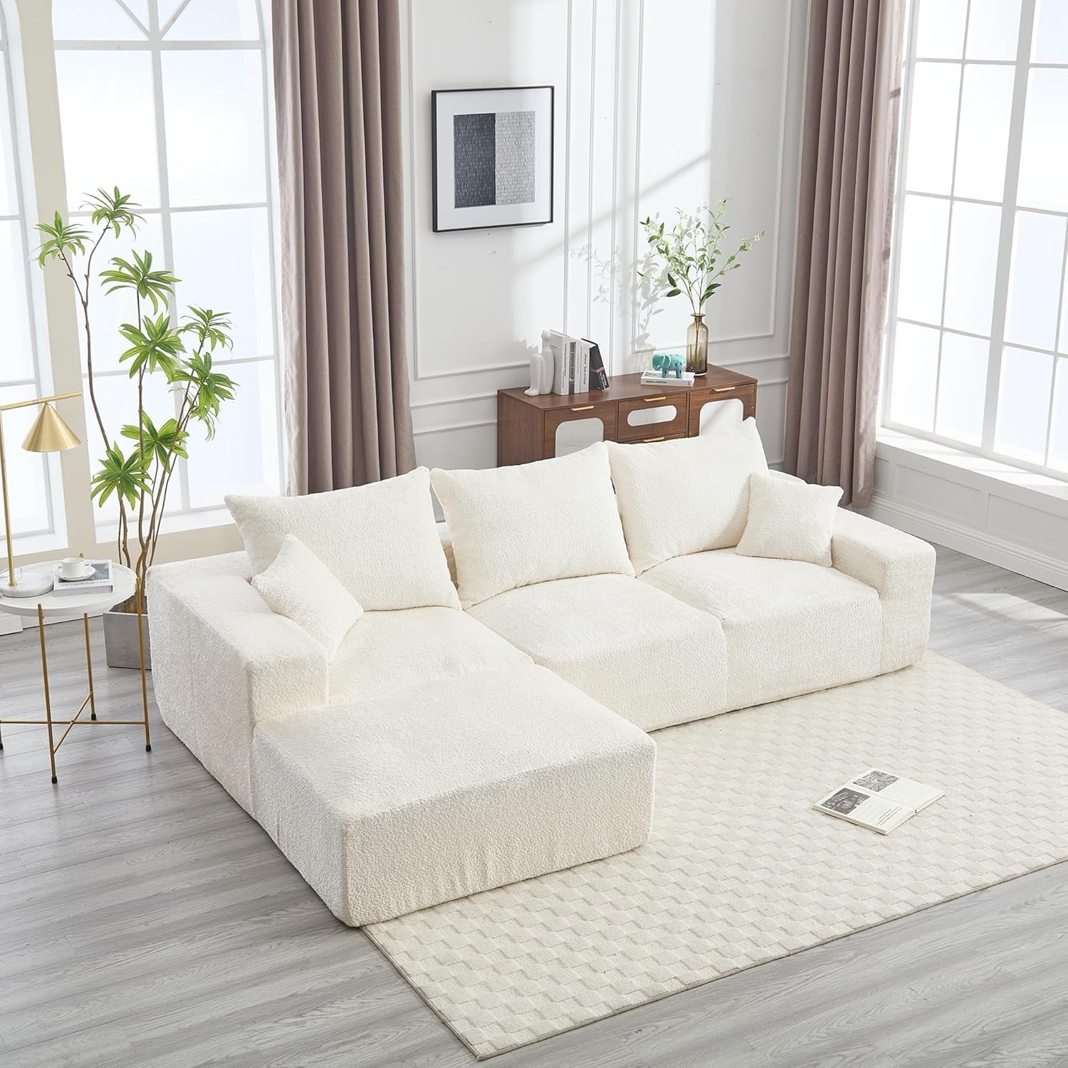 The BISHE Modular Sectional Sofa Couch blends modern design with ultimate comfort. Upholstered in plush chenille fabric, this L-shaped cloud couch features a deep seat for maximum relaxation. Its modular design allows easy customization to fit any space, while storage pockets and included throw pillows add functionality and coziness. With no assembly required, this sofa is ready to use right out of the box. Built to resist compression damage, it ensures long-lasting durability. Perfect for your living room, it transforms your space into a stylish and inviting retreat for relaxing or entertaining.