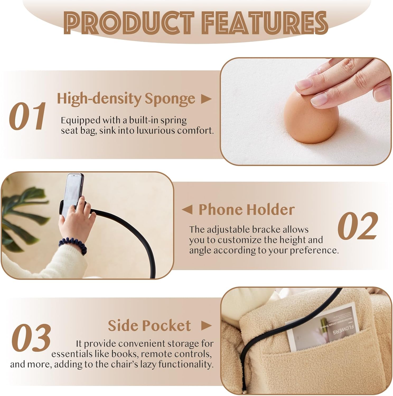 - Ultimate Laziness: Designed for ultimate comfort, our floor chair with back support features a convenient phone holder for a more relaxed experience. The adjustable bracket allows you to customize the height and angle according to your preference. Side pockets provide convenient storage for essentials like books, remote controls, and more, adding to the chair's lazy functionality.