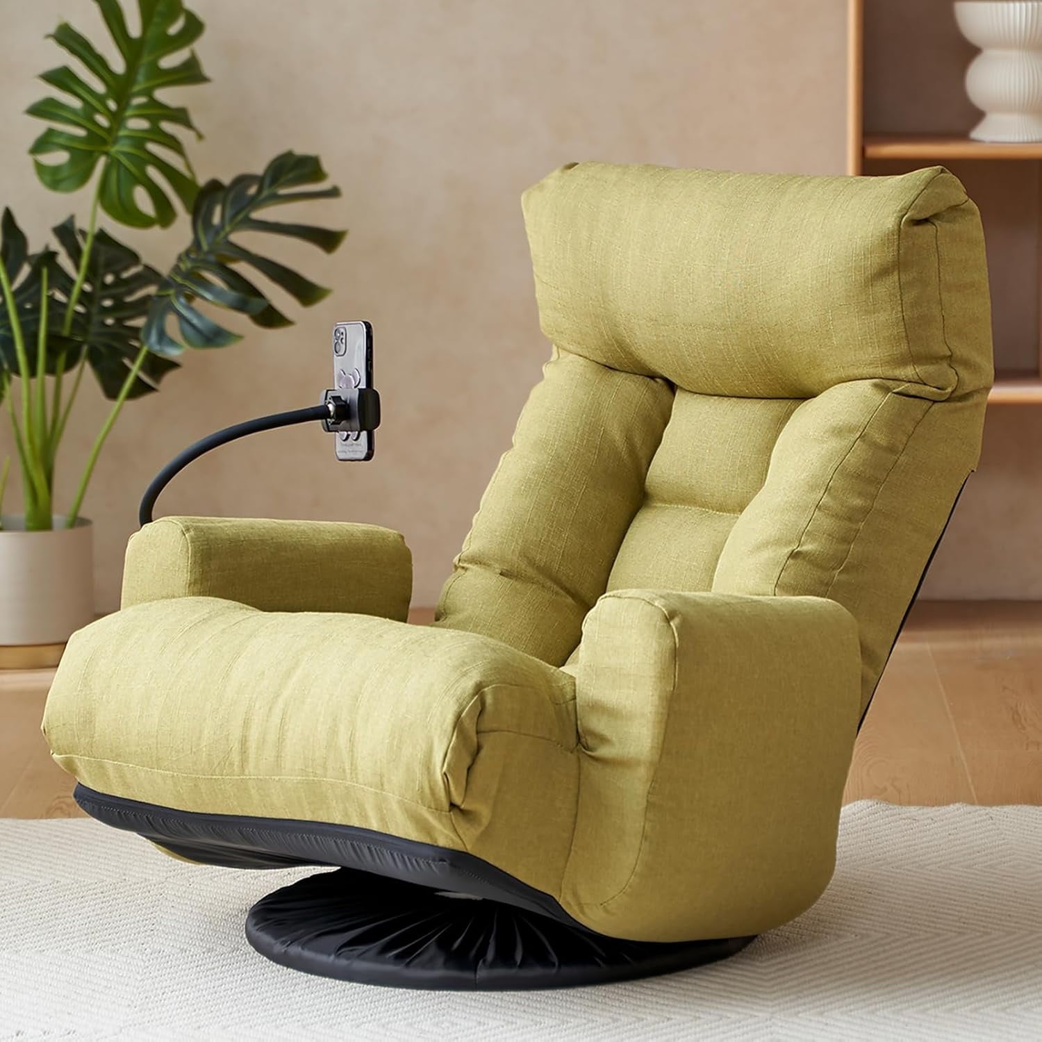 Designed for ultimate relaxation, this BISHE versatile sofa chair offers 5 ergonomic adjustment angles to perfectly align with your spine, ensuring comfort in every position. Whether napping, reading, or binge-watching your favorite shows, its built-in spring cushion provides robust support and lasting comfort, even during extended use. The 360-degree rotating base allows effortless movement, while the added phone holder enhances hands-free entertainment. Compact, space-saving folded packaging ensures easy transport and setup. Elevate your downtime with a chair that blends innovative design, adaptability, and cozy solitude—ideal for modern living spaces seeking style and functionality.