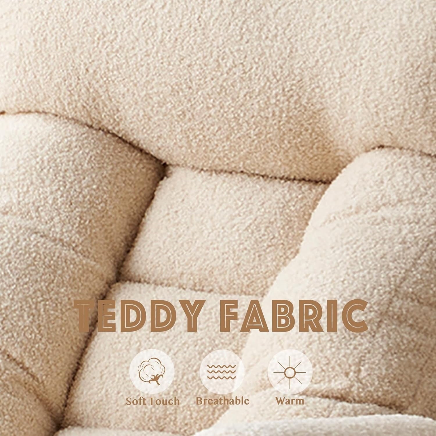 - Plush Seating Experience: Sink into luxurious comfort with our swivel floor gaming chair, upholstered in soft teddy fabric for a cozy feel. Filled with high-quality sponge material and equipped with a built-in spring seat bag, it offers a full sitting experience without feeling tired, even after extended use. Seat wide 22.83 inches and deep 25.5 inches, With ample seating space and thick cushions, it offers unparalleled comfort for your leisure time.
