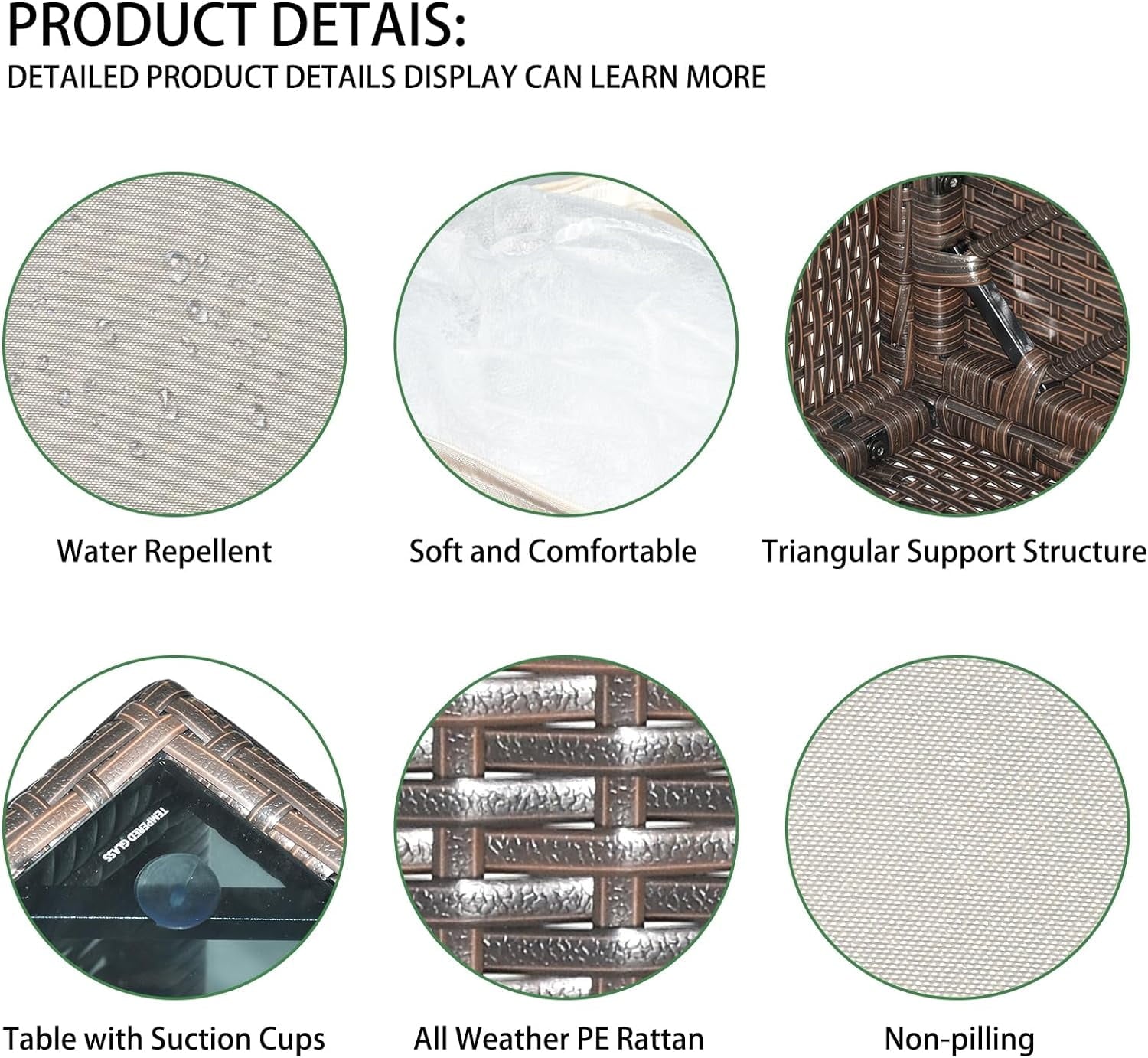 Robust Construction: Built on a sturdy steel frame and wrapped with all-weather PE rattan, this set is reinforced with a triangle support structure for enhanced durability and stability. Perfect for patio, garden, or poolside settings, this versatile set provides a cozy spot for intimate gatherings, relaxing afternoons, or enjoying the serene outdoors.