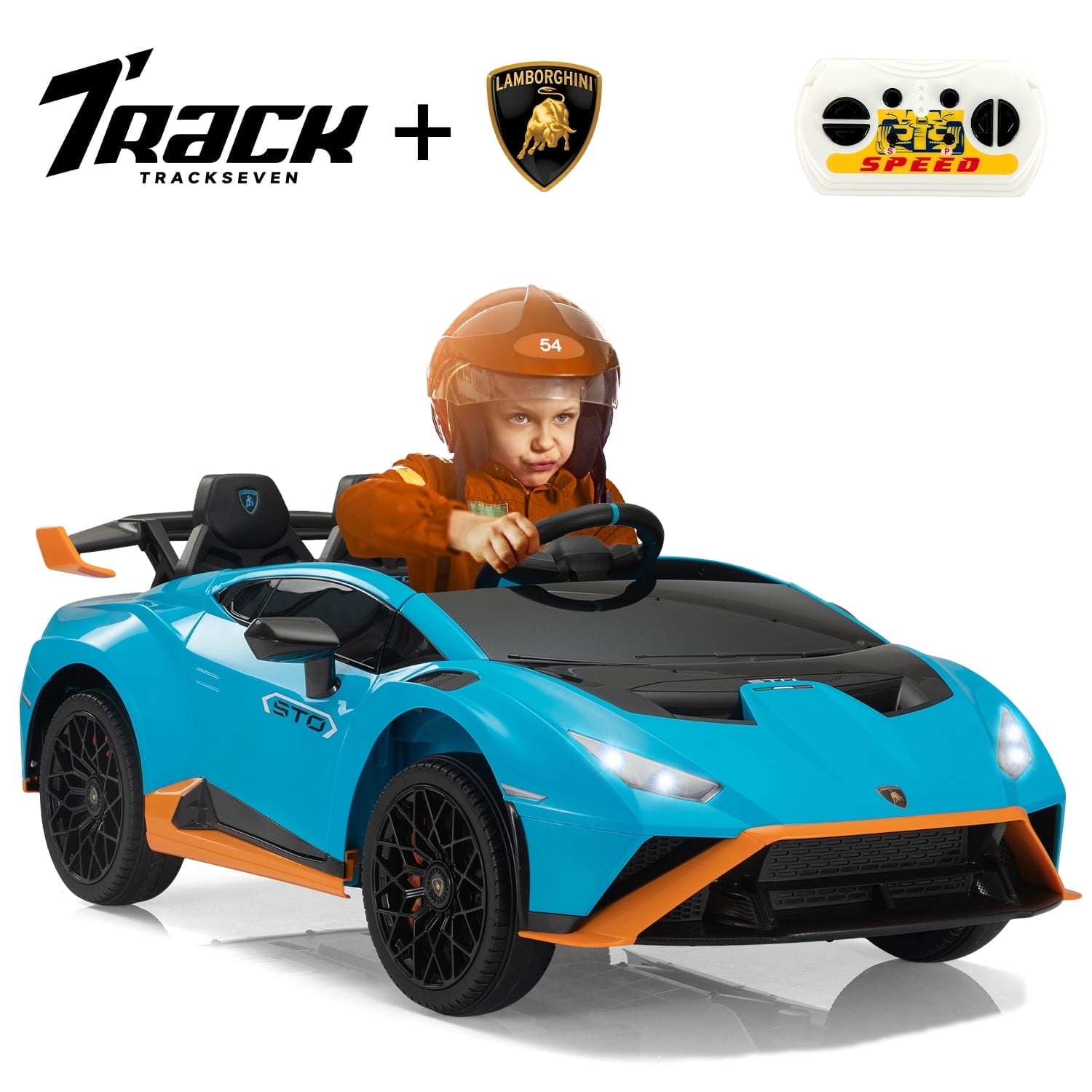 Our Ride on Car, Licensed Lamborghini STO Electric Car, 12V Battery Powered Car w/ 2.4G Remote Control, Drift Mode, LED Lights, Horn, Music, Electric Vehicle for Kids. 5mph. Step the foot pedal and manual the steering wheel, your unisex child can drive the Lamborghini drift car forward and backward easily and independently. Parents can also override the car with 3-speed options for safety. It is worth mentioning that under manual operation, remote control priority control. LED Front and Rear Lights for Safe Driving. Your Kids Can Get In and Out Of the Car with Ease. Comfortable Seat with Safety Belt Provide Safe and Smooth Ride. Lamborghini Remote Control Car for Kids.