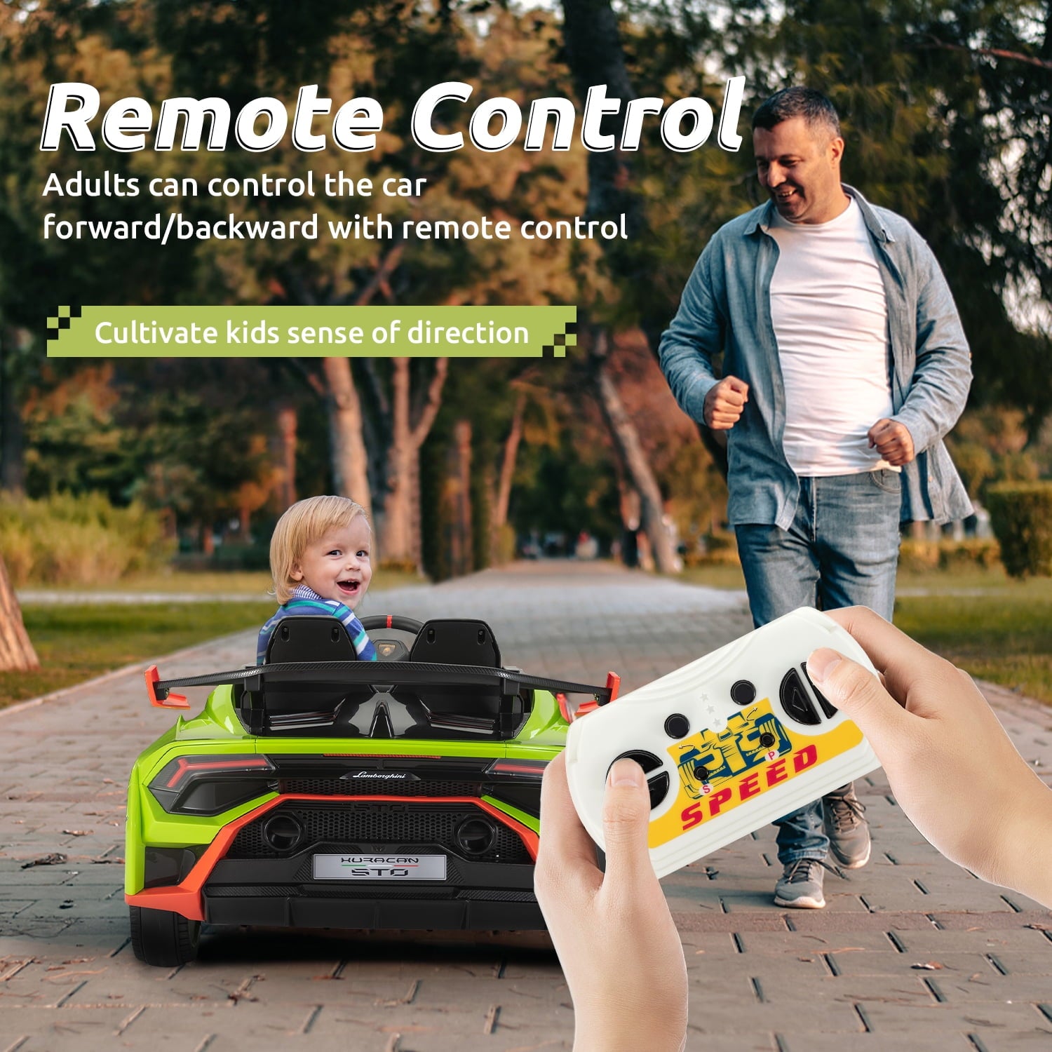 Track Seven 12V Kids Ride on Car, Licensed Lamborghini STO Electric Car for Kids Age 3+, Remote Control, Music, Motorized Drift Electric Vehicle, Max Speed 5mph, Green