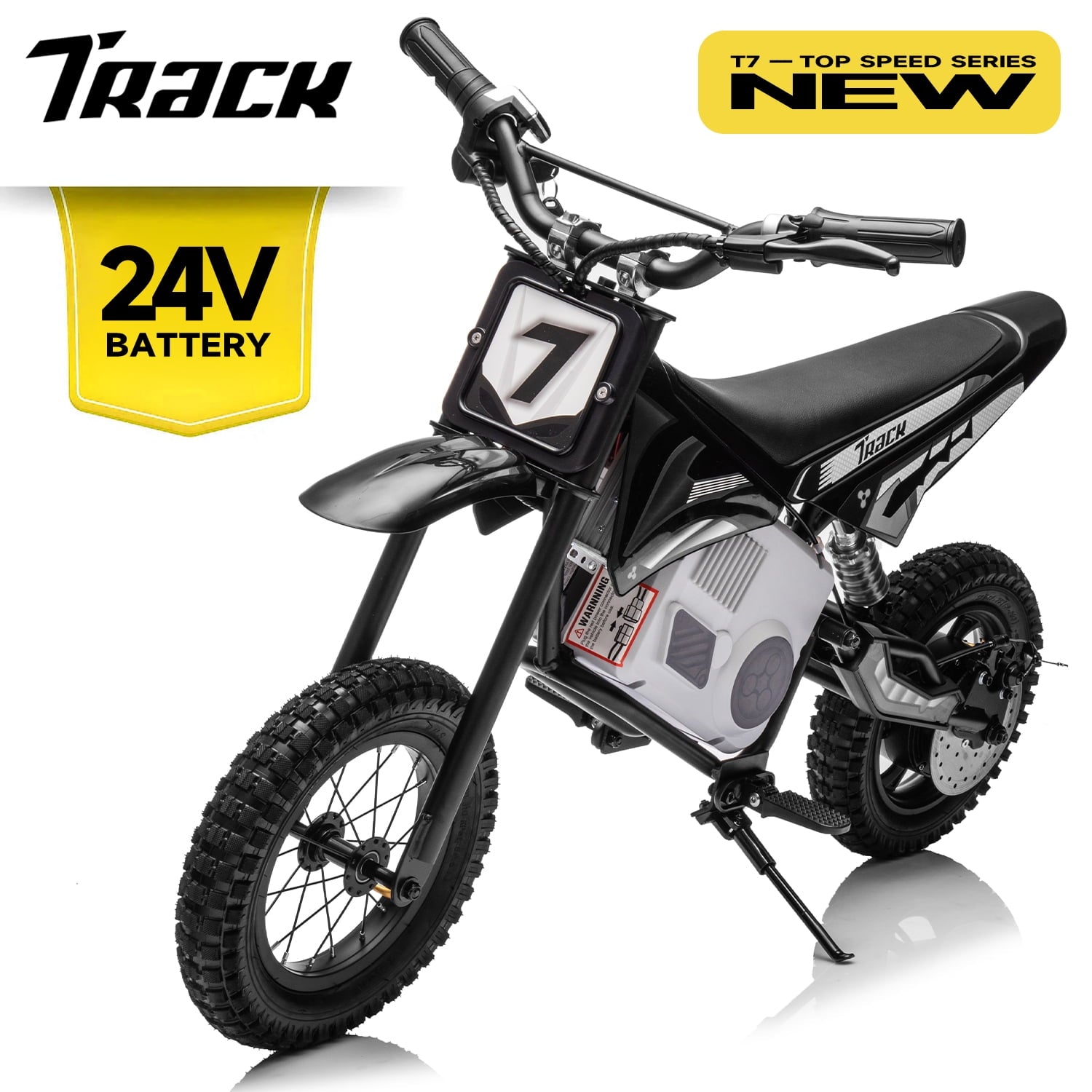 Track Seven 24V Electric Dirt Bike, 350W Ride on Motorcycle with Twist Grip Throttle, Hand-Operated Dual Brakes, Speed Up to 10 MPH, for Age 8-12, Black