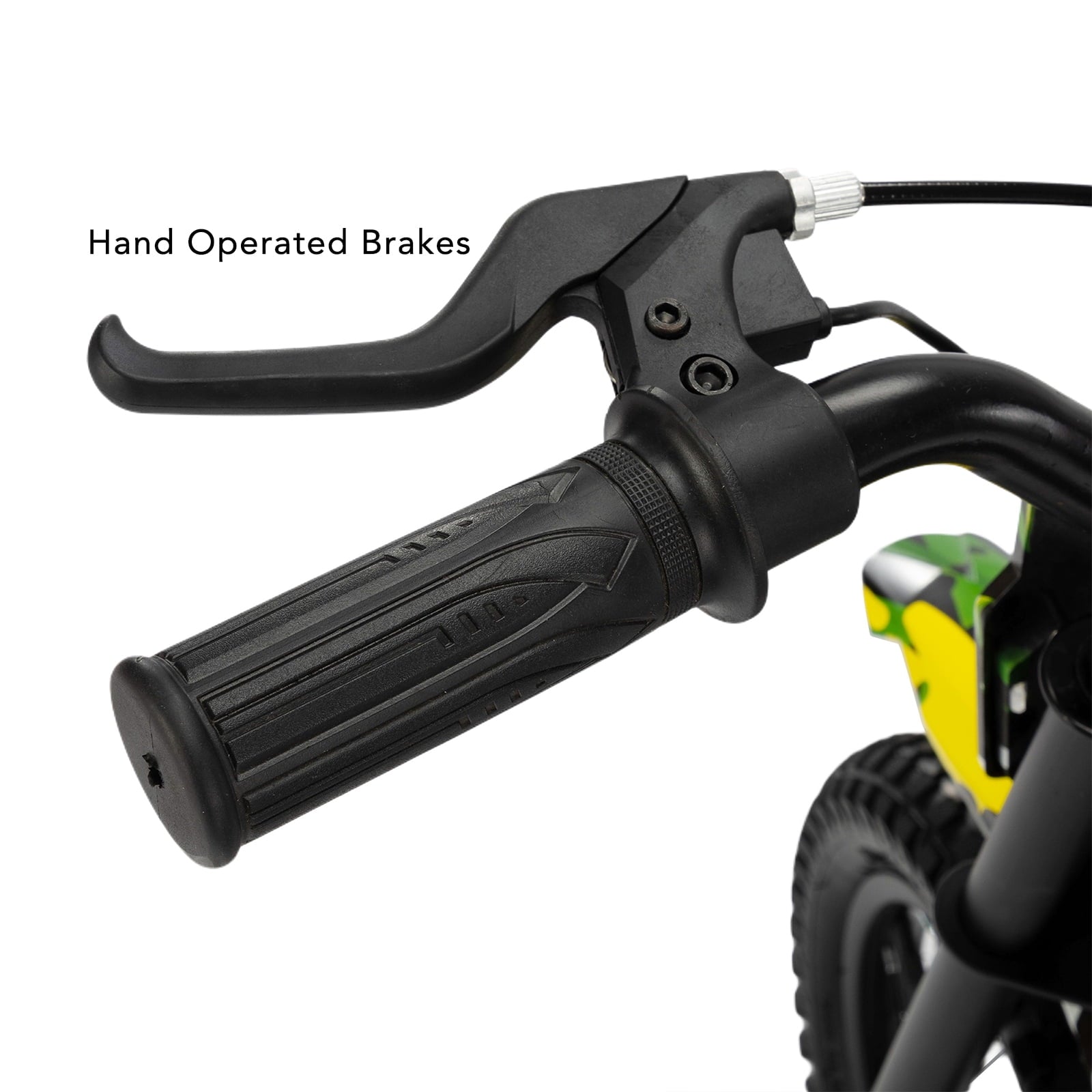 - 【Stable and Comfortable】 12.6" pneumatic knobby tires and rear spring suspension give this kids electric dirt bike an excellent grip and shock absorption.The rider can easily control the off-road bike to cope with different terrain.
