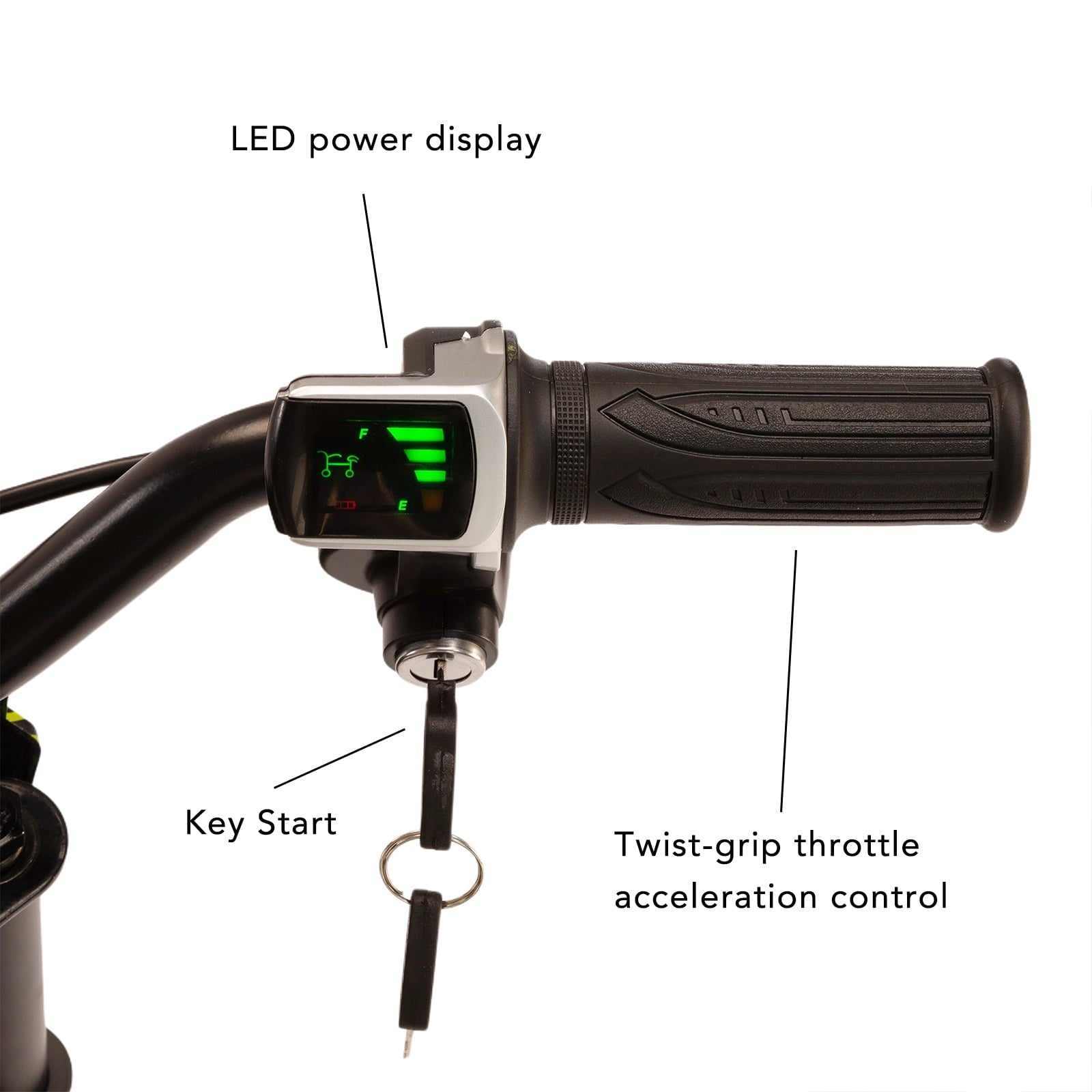 Our Track 7 24V Kids Electric Dirt Bike, Battery Powered Ride-On Motorcycle. This electric motorcycle, a scaled-down version of a real dirt bike with adjustable speeds, colorful LED lights, and power display, is a perfect present for young boys and girls aged 6-12 to experience exhilarating rides. Driven by a 24V 250W motor and powered by a 25.2V 4.0AH battery, this 24V ride-on motorcycle can meet your little adventurer's need for high speeds. The rear disc brake makes stopping quick and safe. Use the key to turn on the electric bike and turn the handles to ride forward. Your child can choose from 3 speed options by controlling the speed control button, with average speeds of 5-13 mph.