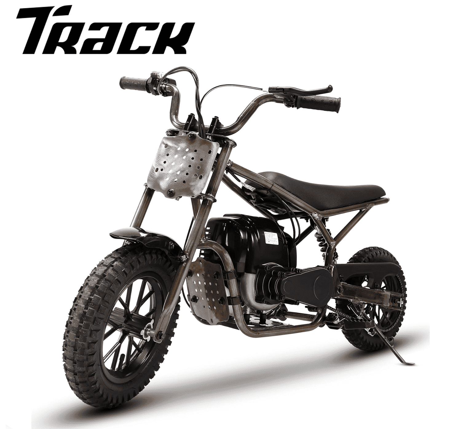 The Track 7 37.7CC dirt bike delivers authentic off-road excitement designed specifically for young riders ages 6+. This gas-powered mini motorcycle combines real 4-stroke performance with kid-friendly features, including an easy pull-start system and automatic transmission that eliminates complicated shifting. The sturdy steel frame construction and responsive disc brakes provide essential safety for developing riders, while the comfortable seat height and lightweight design ensure proper control. With a top speed of 15 MPH, this dirt bike offers just the right amount of thrills for backyard adventures or trail riding, helping young riders build coordination and confidence. The durable knobby tires grip various terrains securely, and the simplified controls make it the perfect first motorcycle to introduce kids to the joy of riding. Parents will appreciate the quality construction and safety-focused design, while young riders will love the authentic dirt bike experience.
