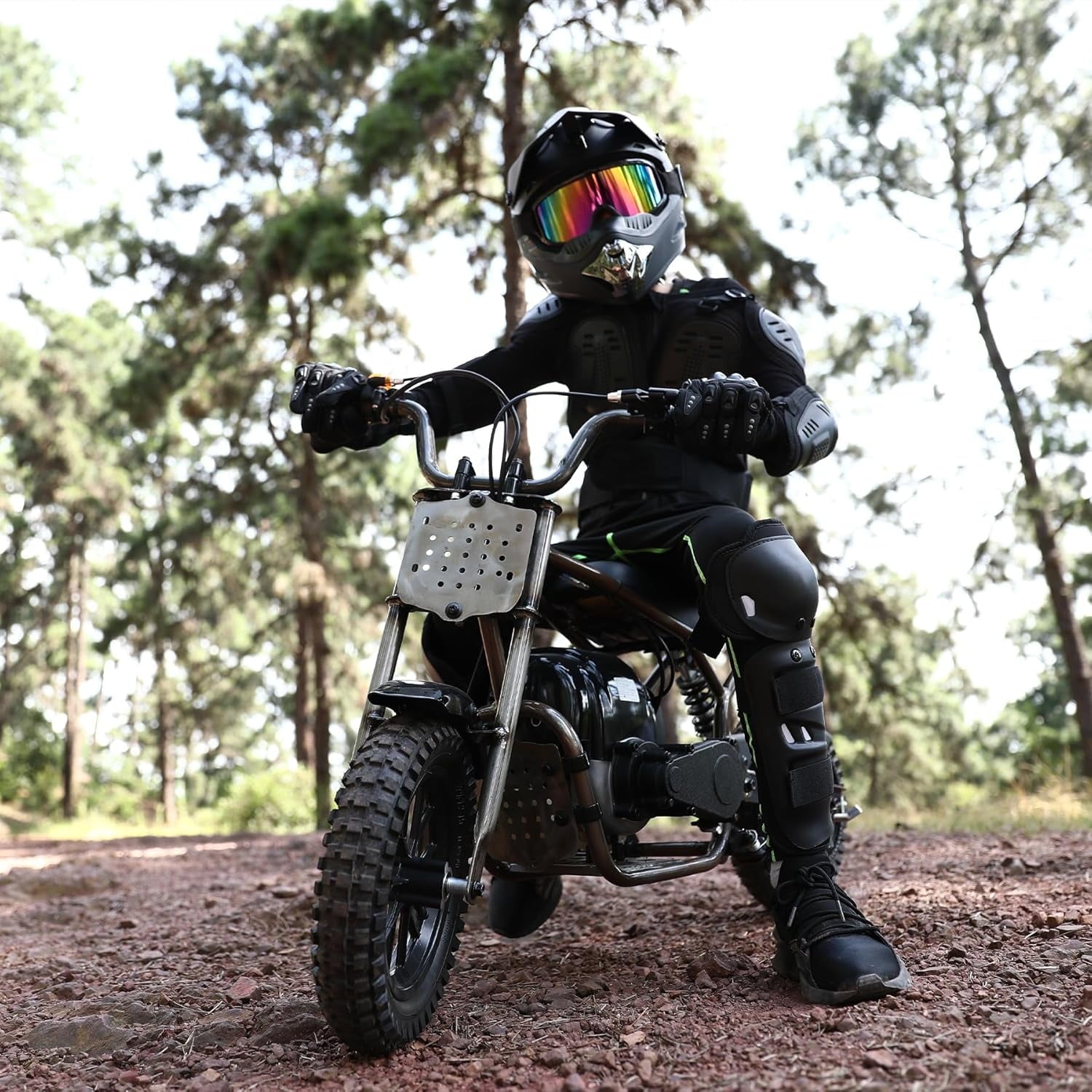 - 【Kid-Safe Power & Performance】Suitable for Both Kids and Adults- This 37.7CC 4-stroke mini dirt bike delivers just-right power for young riders (ages 6+) with a governed 15 MPH top speed.
