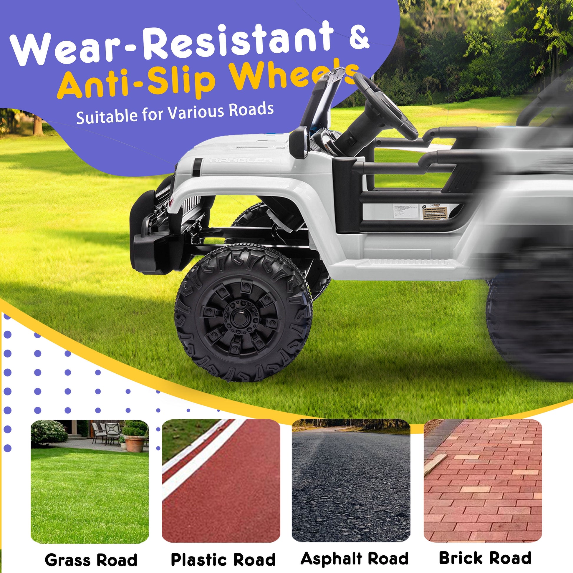 - 【Off-Road UTV Truck】 The design of quick disassembly of the steering wheel is convenient for storage and carrying, does not occupy space, and easily meets the needs of different use scenarios. DIY digital letter stickers, freely decorate children's car, show personality.