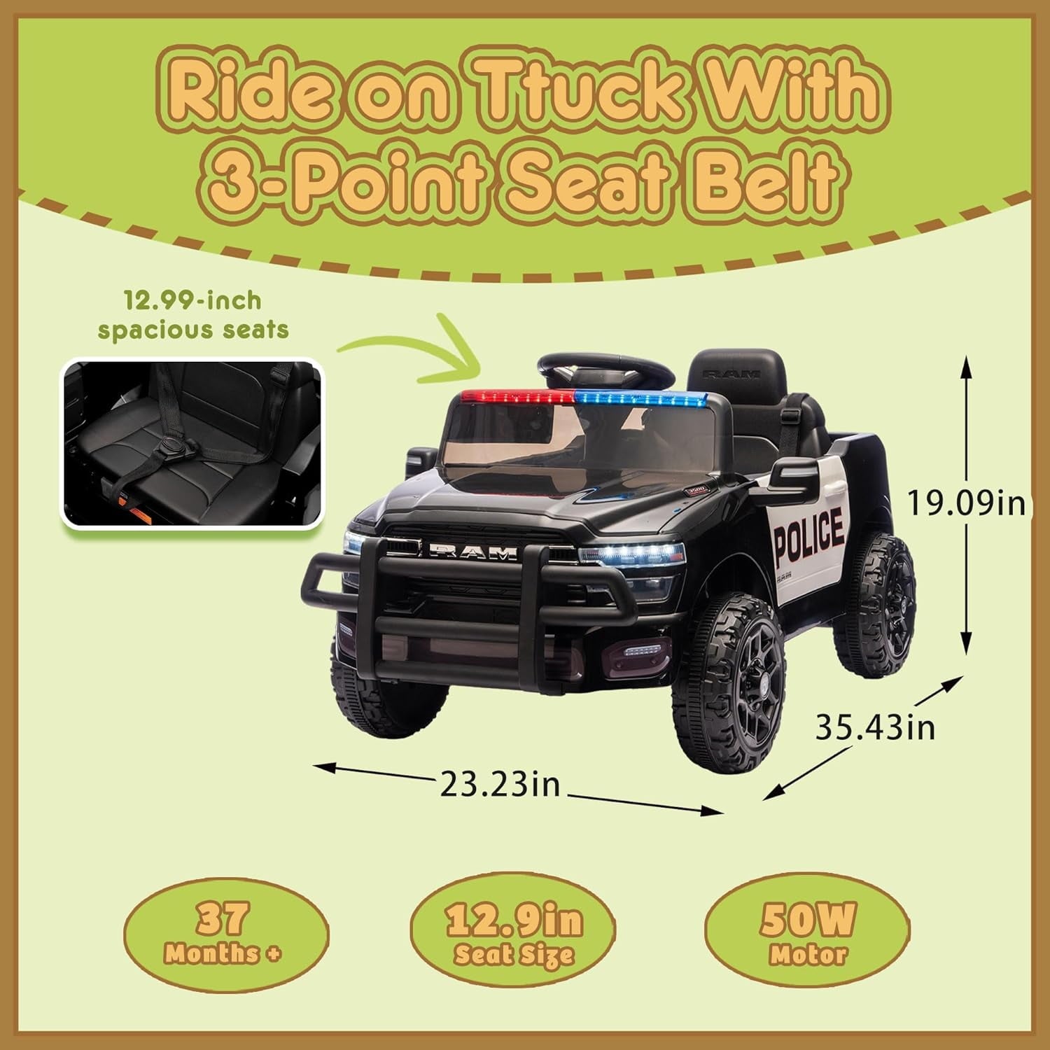 Track Seven 12V Ride on Car, Licensed Dodge RAM 3500 Ride On Truck with Remote Control, Rear Shock Suspension, LED Headlights, Low Battery Alarm, Bluetooth, Music, Ride on Toy for Kids Aged 3+, Black