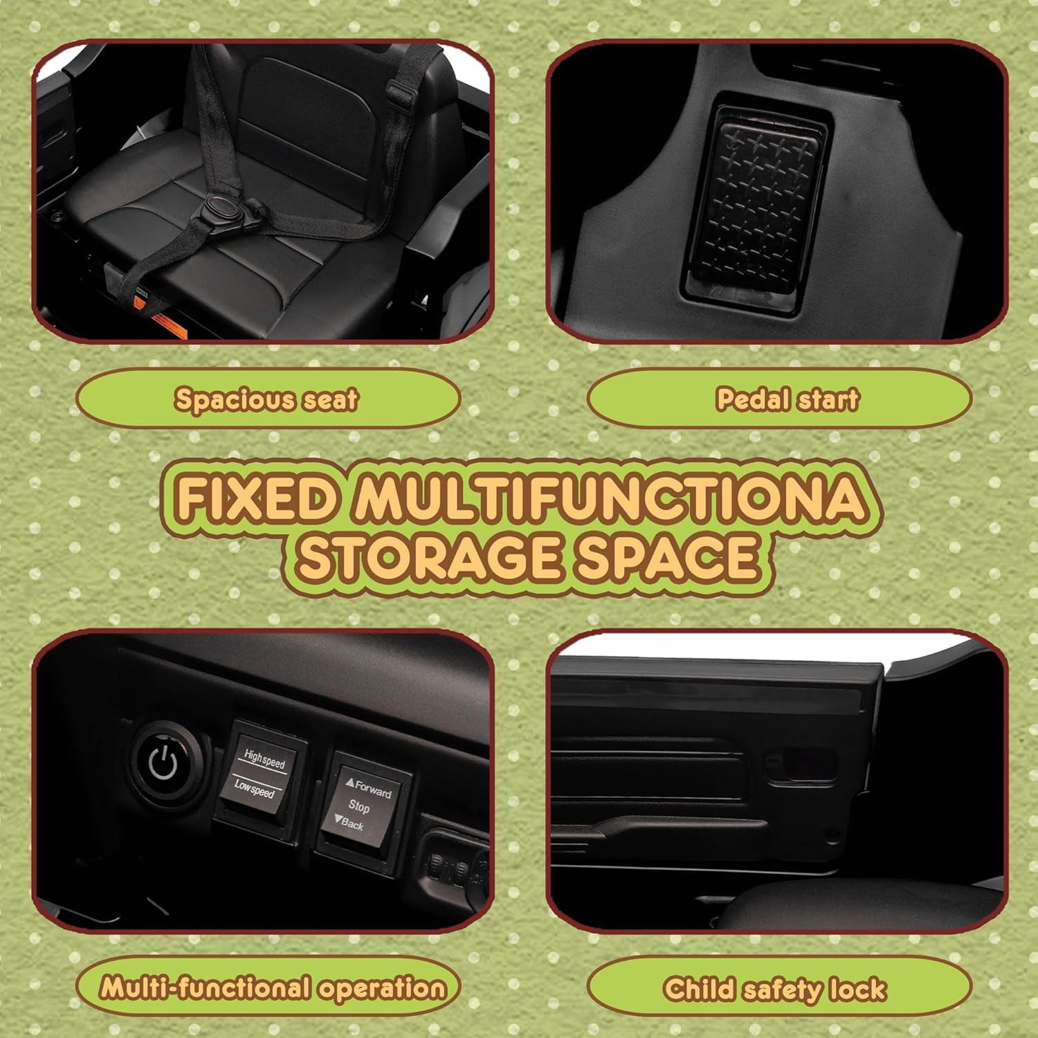 • 【Safety First】With a secure three-point seatbelt and lockable doors, your little one stays protected while enjoying their driving adventure. This kids remote control ride on car comes with a 2.4G parental remote that lets you steer, stop, or park at any time—ensuring extra safety and peace of mind for younger kids still learning to drive.