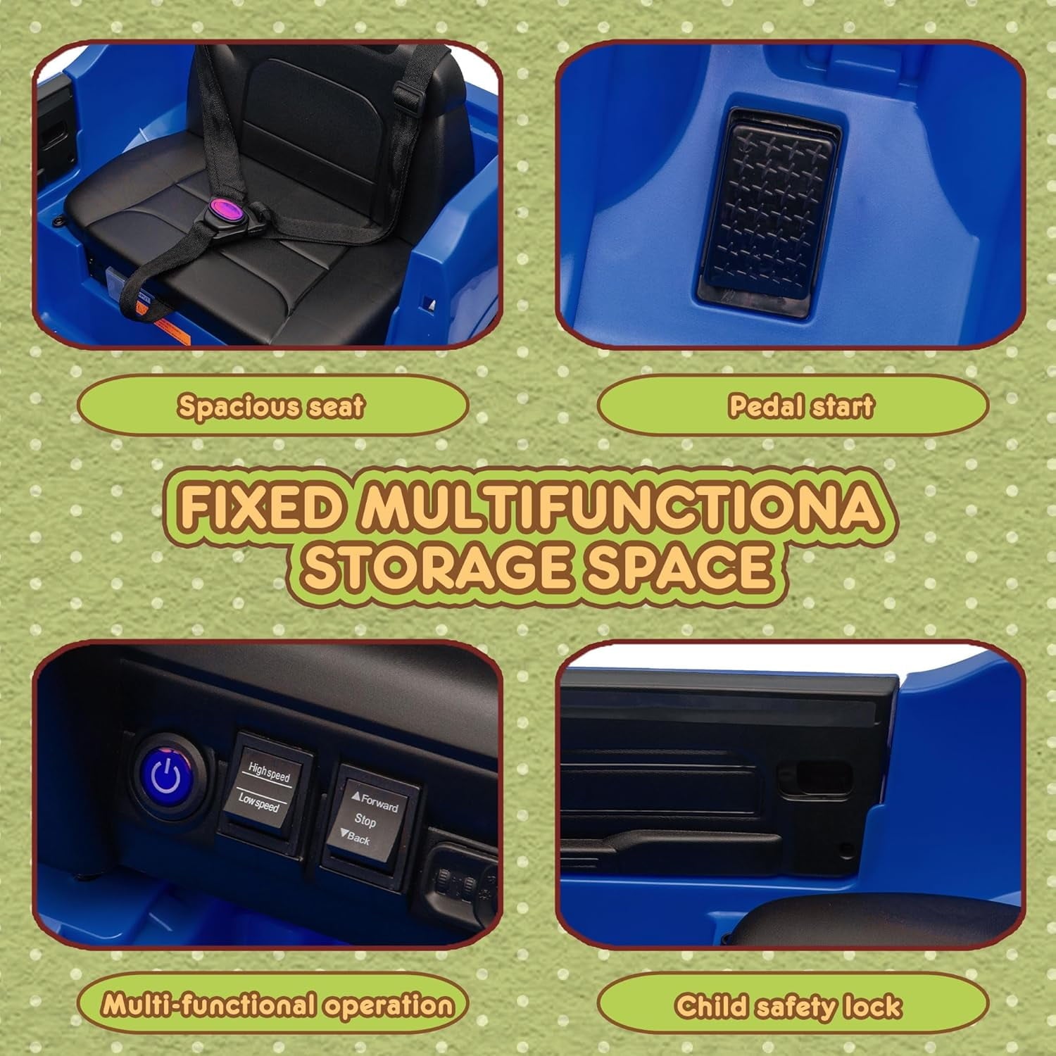 - 【High Performance】This ride-on truck is powered by 2*25W motors and a high-capacity 12V 4.5Ah rechargeable battery, providing ample power output. The dual drive system offers better traction and control. The two adjustable speeds, maxing out at 3.11 mph, , it provides about 1 hrs thrilling yet safe driving fun for kids.