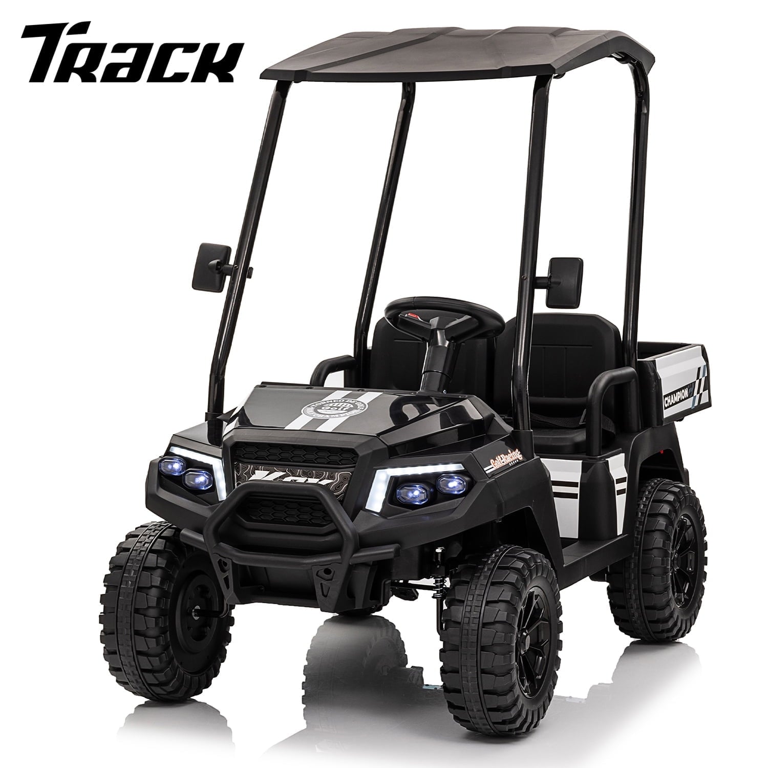 - 【Multifunctional 2 Seater Ride on Car 】ELEMARA 2 seater electric off-road UTV is not just an ordinary kid's electric car. It comes with a sun shade, lifting dump bed, shovel, Bluetooth and music player to bringing more fun and creativity to your little one's riding.