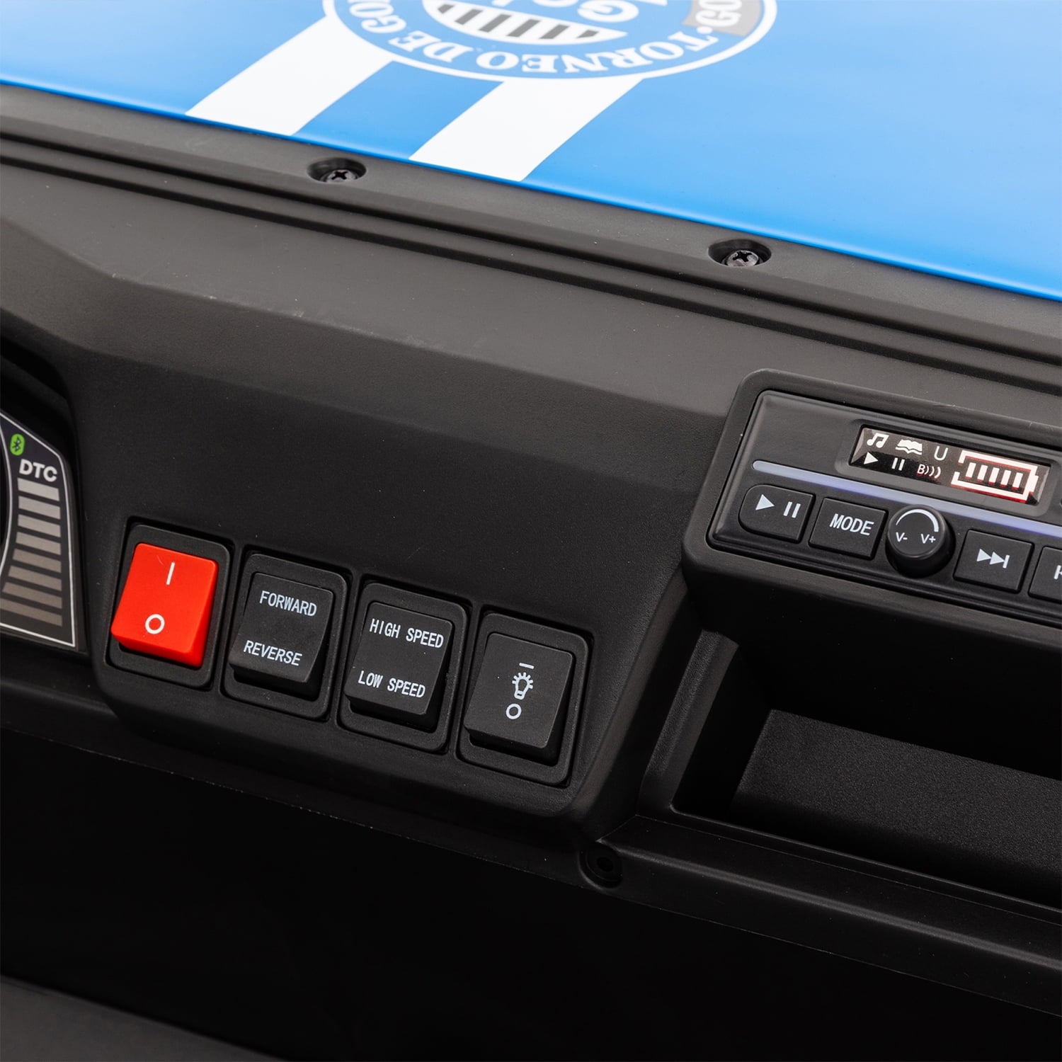Track Seven 2-Seater 24V Ride on Car, Electric off-Road Truck with Remote Control, Removable Sunshade, Bluetooth, Rear Storage, 20" Wide Seat, Ride on Toy Car for Boys Girls Aged 3+, Blue