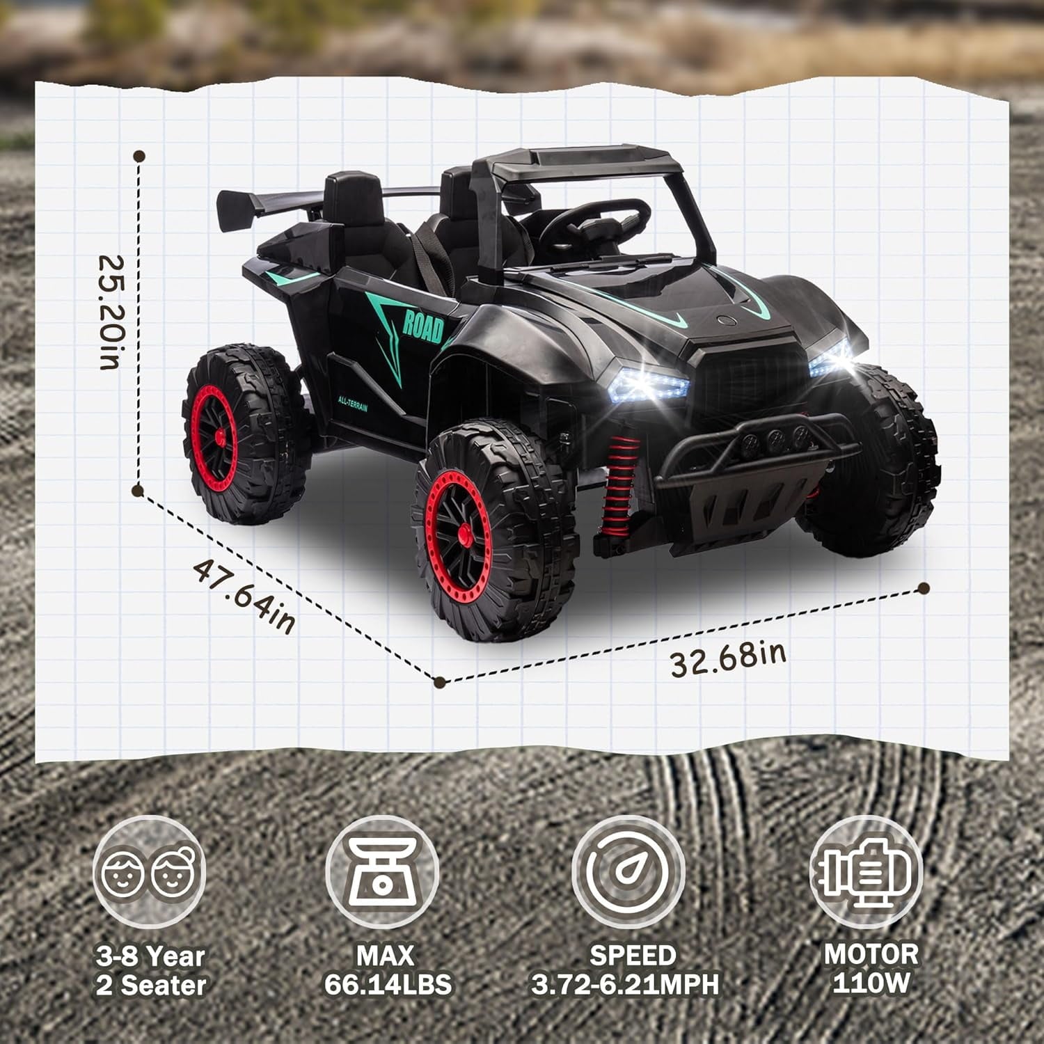 - 【2-Seater Ride on UTV】This 24v 2 seater kids car with spacious 20.4" seats provides plenty of space for two children up to 4 years old or one 3-8 years old. Your children can bring their friends along for an amazing driving experience. Weight Capacity: 66lbs. (Note: That not be permitted for road use or commuting.)