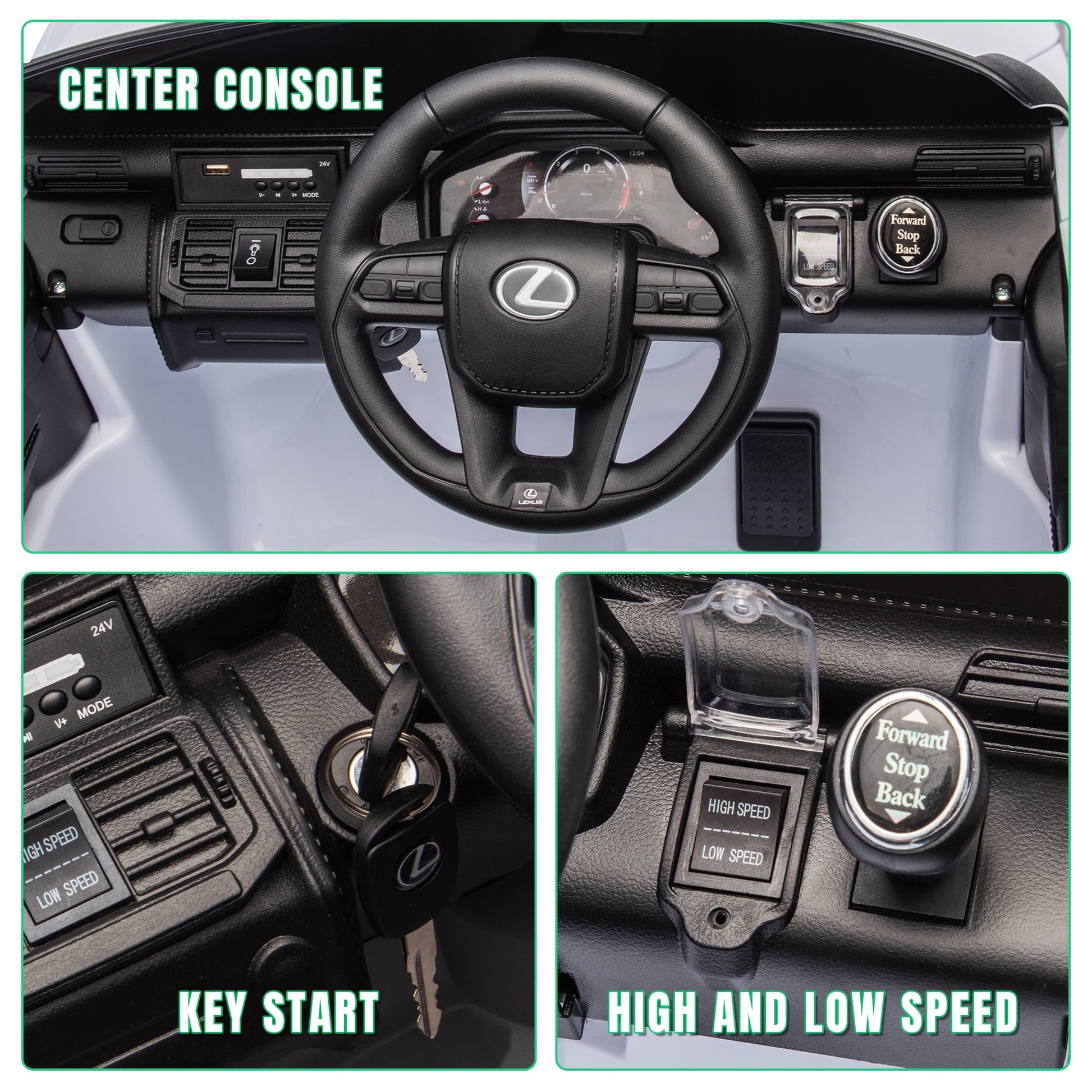 - 【2-Seater Ride on Car】Our licensed LEXUS LX600 24v ride on car with spacious 20" seats provides plenty of space for two children up to 4 years old or one 3-8 years old. Your children can bring their friends along for an amazing driving experience. Weight Capacity: 77lbs. (Note: That not be permitted for road use or commuting.)shared experiences, making playtime more enjoyable.