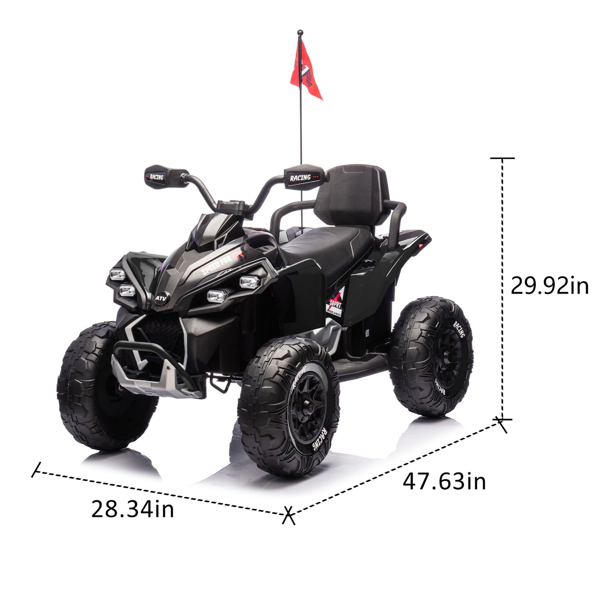 Track Seven 24V Kids Ride-On ATV, Four Wheeler Quad Electric Car with Remote, 2 Speeds, Bluetooth, LED Light, English Storytelling, Shock Absorber, Kids Electric ATV for Boys Girls Aged 3+, Black
