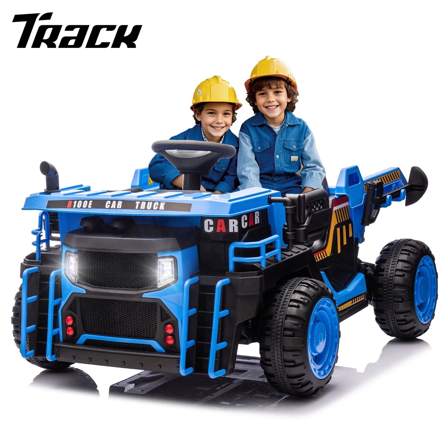 This Track Seven 12V ride-on car, available in black, yellow, and blue, is designed for endless fun and creativity. The spacious 19.69-inch double seat with safety belts ensures kids can ride comfortably with a friend, fostering shared joy and excitement. Powered by a strong 12V7AH battery and dual 200W motors, it offers three speeds adjustment, delivering both thrilling and smooth rides. The electric rear dump and shovel design let kids transport toys, sand, and more, encouraging imaginative play and hands-on fun. Equipped with USB and MP3 functionality, children can enjoy their favorite songs and stories, adding an educational touch to playtime. The rear wheel shock absorption system ensures a steady and safe ride, even on bumpy roads, while the remote control offers parents full control for added peace of mind. A perfect blend of fun, functionality, and safety, this ride-on car is the ultimate gift for young adventurers!