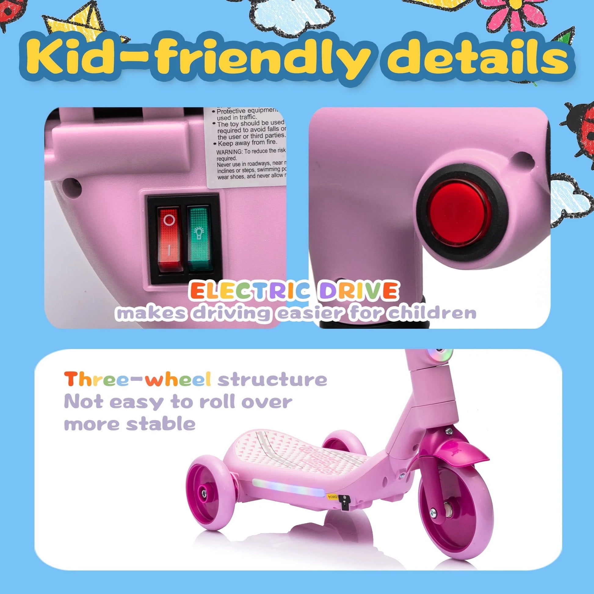 Our 2-in- Ride On Three-Wheel Balance Electric Scooter brings the perfect first scooter for kids! The stable three-wheel design helps children develop balance and coordination, while the wide pedal ensures a comfortable ride. Vibrant LED lights and a unique mist spray add excitement, making every ride more fun. The independent light switch and cheerful music enhance the experience, keeping kids engaged. Easy to assemble and featuring a one-button start, this scooter encourages active play and boosts confidence with every glide! FUNCTION: Three-Wheel Design Wide Pedal Design Color LED Lights Independent Light Switch Simple Installation One-Button Start Unique Taillight Design Proper Speed