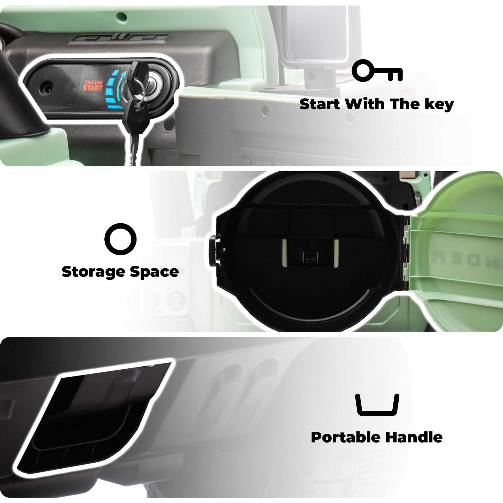 - 【Licensed Land Rover Kids Ride on Car】Our electric car is officially licensed by Land Rover Defender, a perfect reproduction of its classic cool design. Use key start providing real car experience. Forward or backward, high or low speed choose.